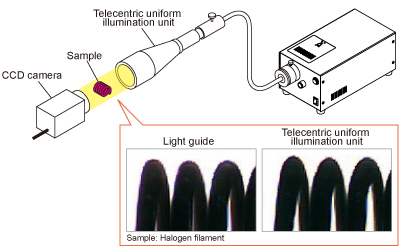 遠(yuǎn)心均勻照明裝置通過(guò)連接到準(zhǔn)直器鏡頭實(shí)現(xiàn)平行照明。